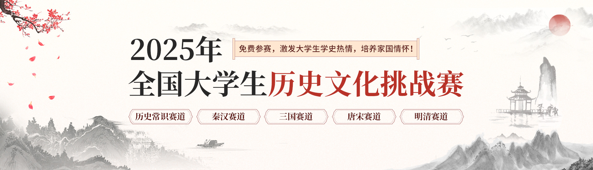 为深入贯彻落实党的二十大精神,深刻践行“自信自强、守正创新,全面推进中华民族伟大复兴而团结奋斗”的时代要求,2025年全国大学生历史文化挑战赛以“鉴古知今、砺行致远”为主题,以历史知识为载体,致力于通过“重大历史事件回溯”“制度文明演进”“历史人物重现”等多元题目,激发大学生学史热情,培养全国高校大学生的家国情怀,造就兼具历史纵深感与时代使命感的创新型人才。